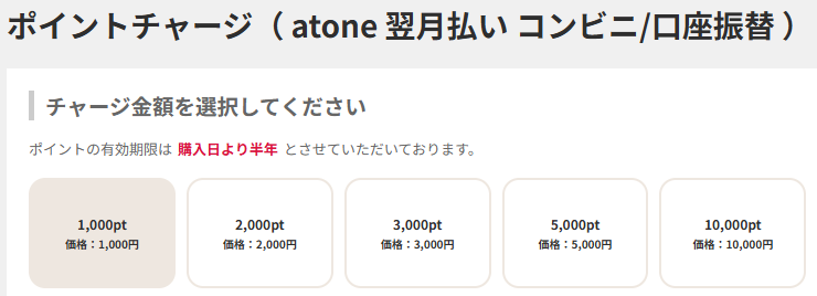 - 本キャンペーンは、atone翌月払いで3,000円以上をポイントチャージした場合のみ ポイントバックの対象となります。